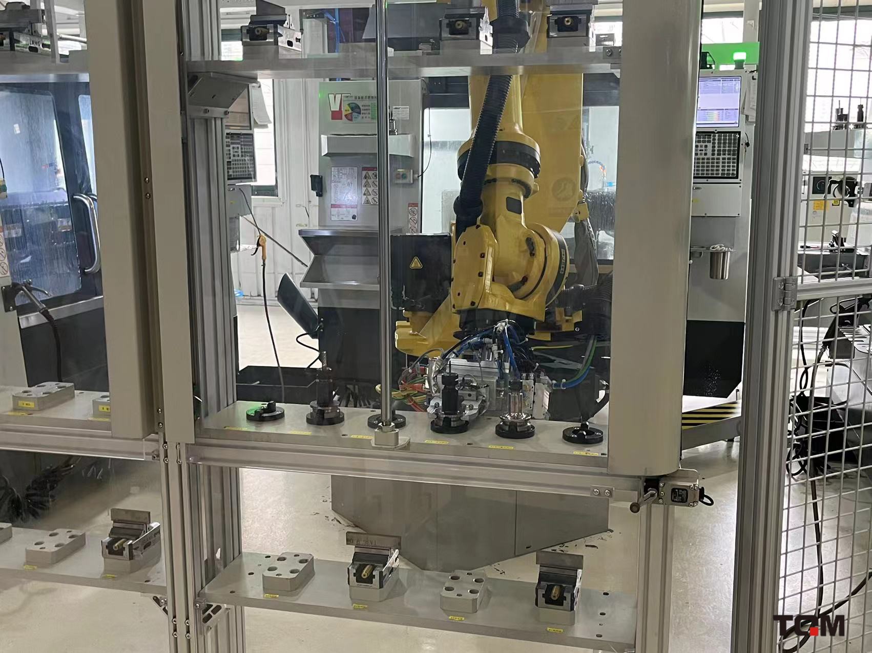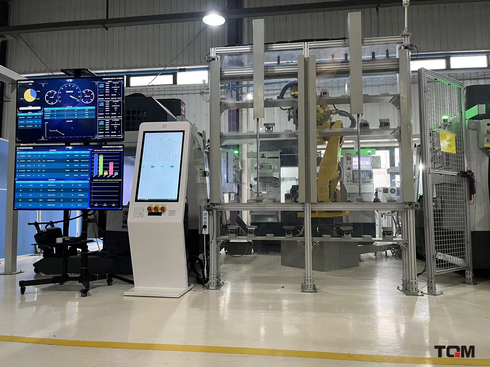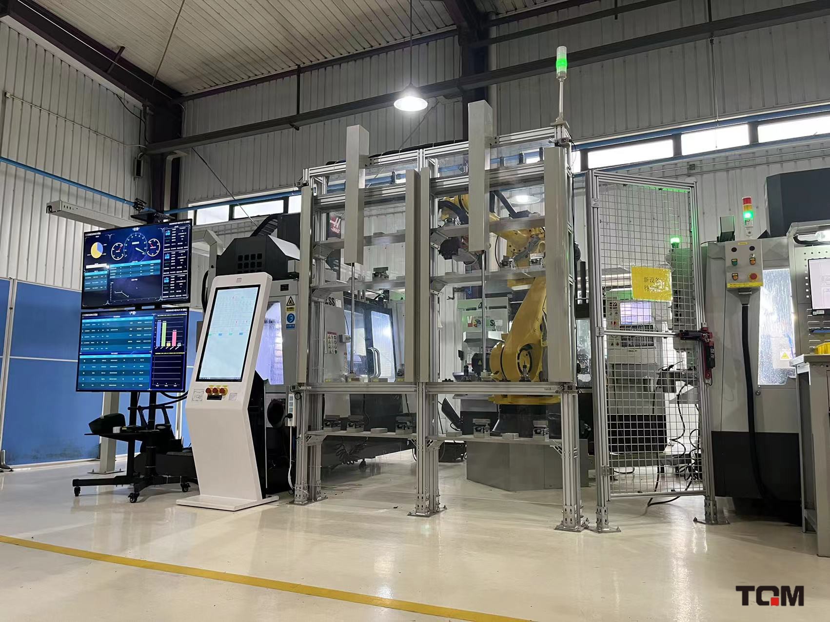 智能柔性生產單元,利用三臺機床及機械臂設計研發為島式生產單元,自動調度智能生產單元內進行生產行,機床稼動率達到96%以上。