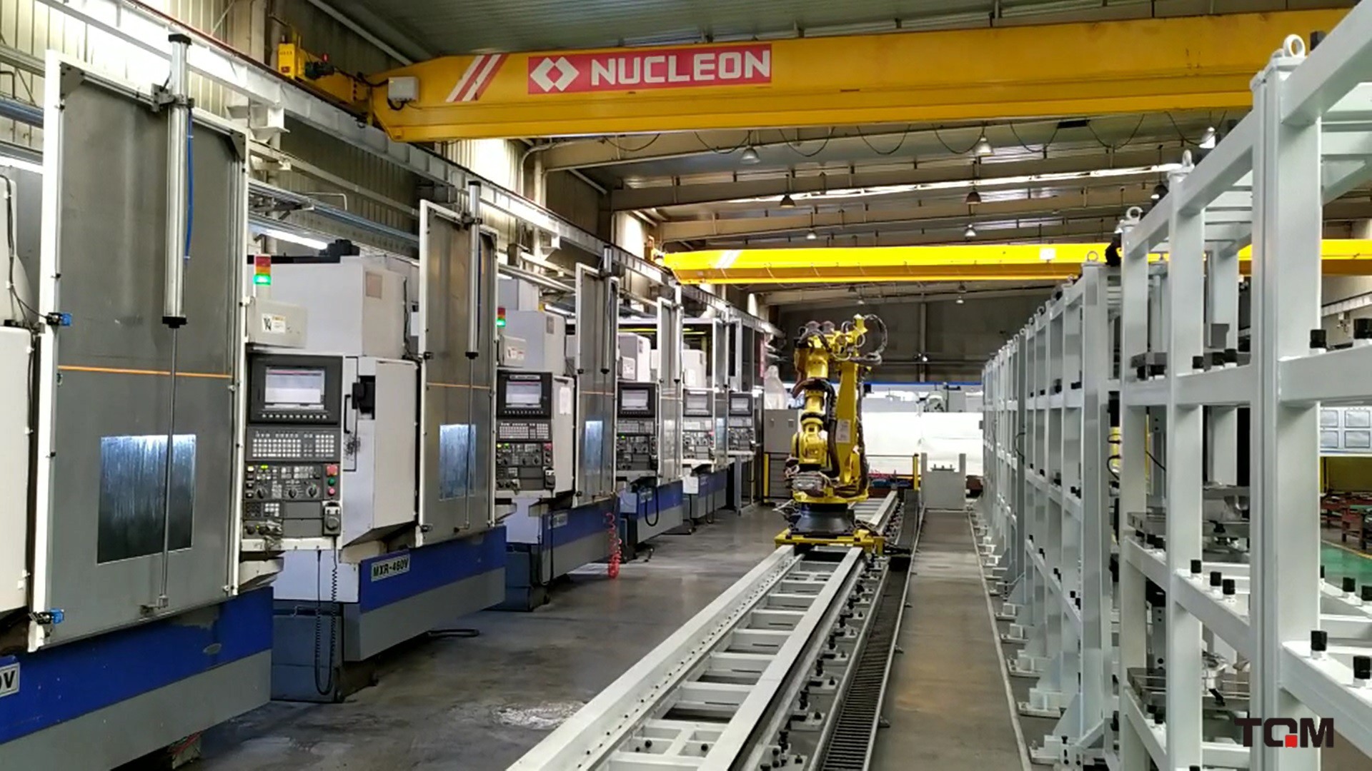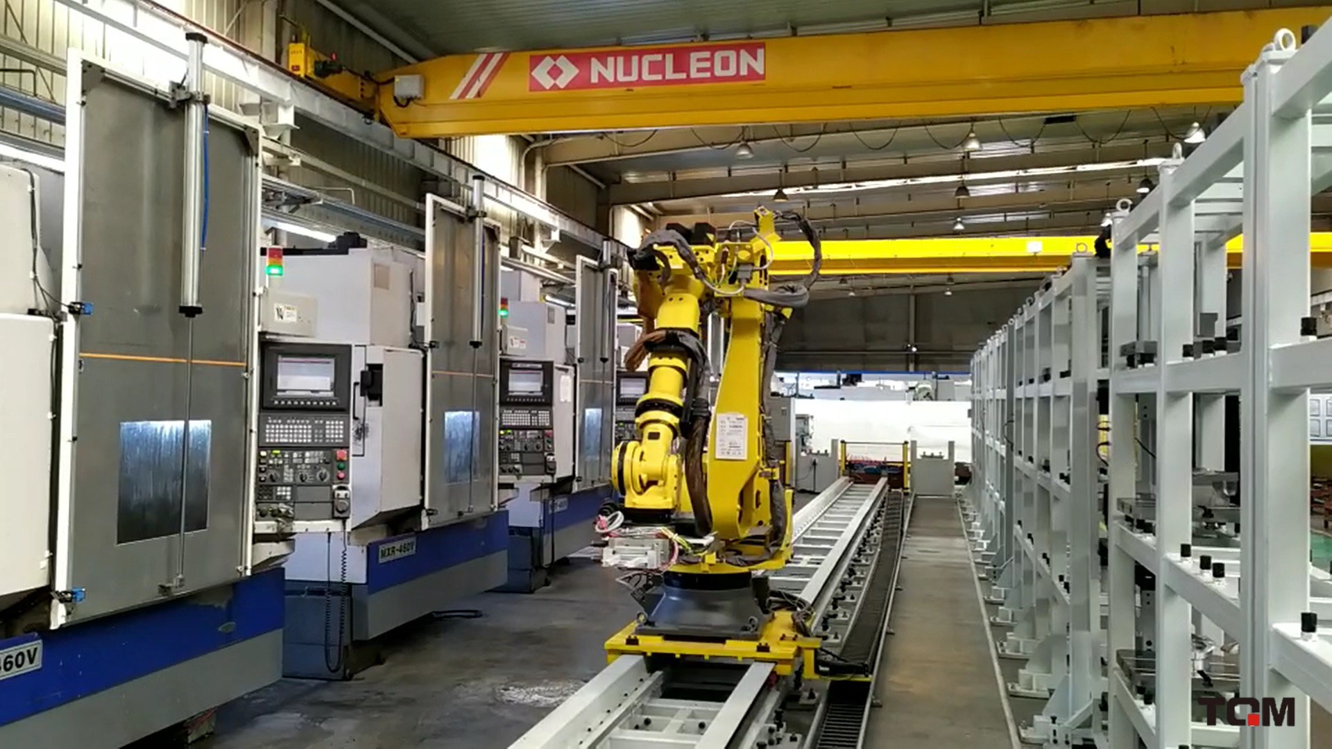 智能生產線,利用車間內匹配的設備進行智能化升級改造,加入機械臂的應用,使線體內機床自動運轉及調度,達到非標件柔性自動調度生產的效果。